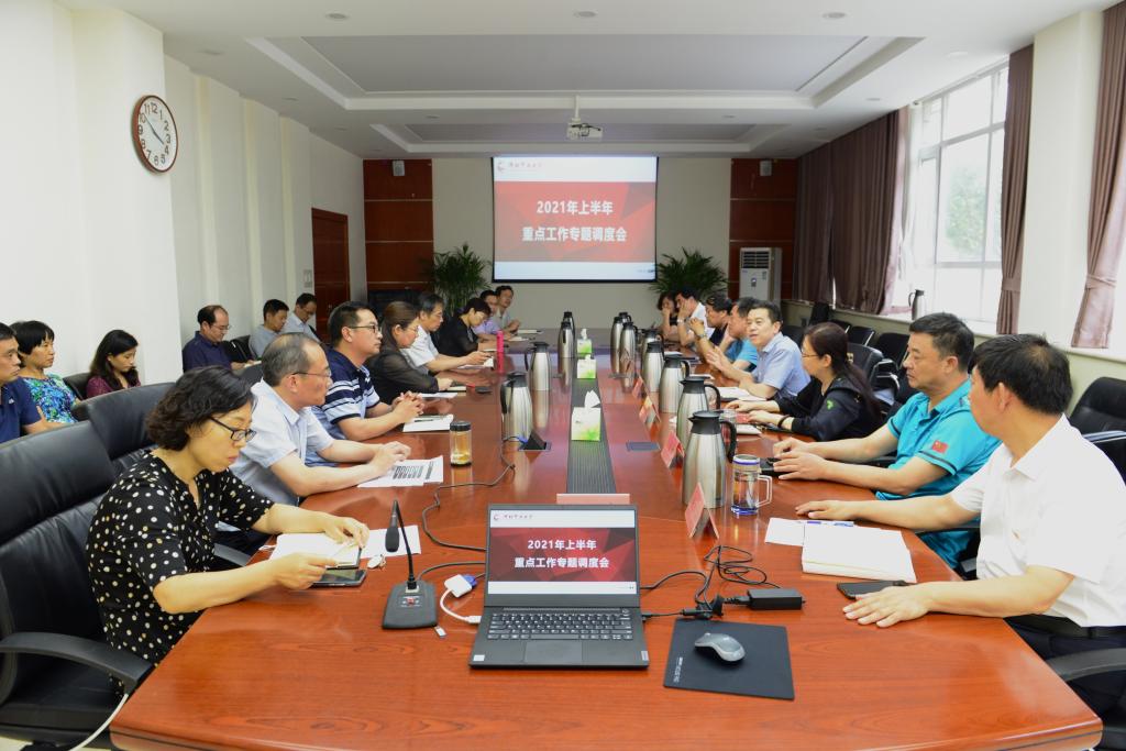 為有效推進學校各項工作順利開展,確保2021年重點工作任務落地落實,7月2日,我校召開了2021年上半年度重點工作專題調度會,學校領導班子全體成員出席會議,各部門負責人參加了會議。黨委副書記、校長段潤保主持會議,校黨委書記籍獻平作總結講話。