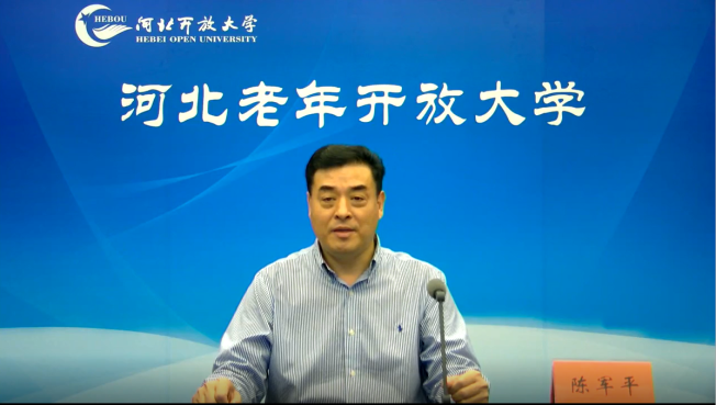5月16日上午9:00,河北老年開放大學2022年春季學期開班典禮直播在學校雙向視頻室舉行。陳軍平副校長參加直播并講話。