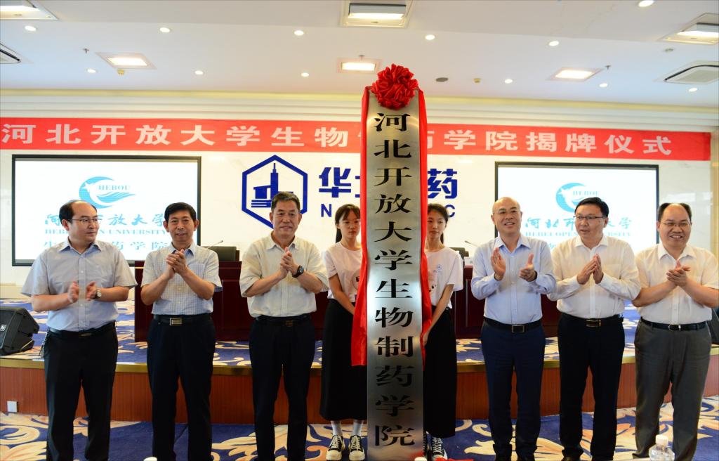 6月19日下午,河北開(kāi)放大學(xué)生物制藥學(xué)院揭牌成立。這是我校設(shè)立的首個(gè)行業(yè)學(xué)院,是與華北制藥集團(tuán)有限責(zé)任公司(以下簡(jiǎn)稱“華藥集團(tuán)”)共同合作開(kāi)展人才培養(yǎng)和科技服務(wù)的應(yīng)用型專業(yè)學(xué)院。我校黨委書記籍獻(xiàn)平,華藥集團(tuán)黨委書記、董事長(zhǎng)肖明建共同為學(xué)院揭牌。