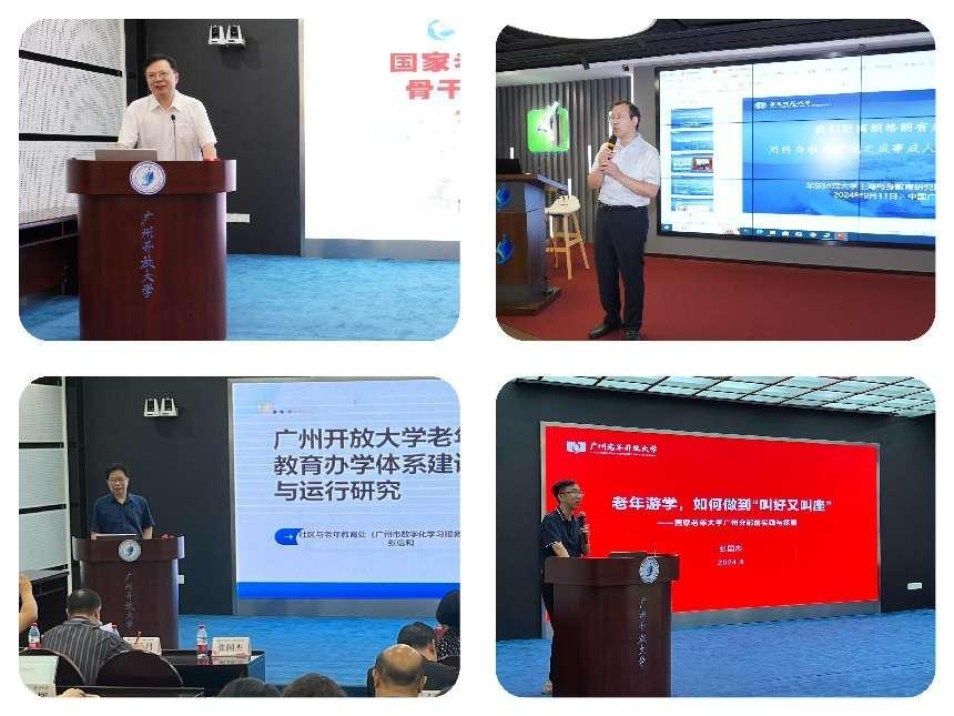 培訓期間,廣州開放大學校長熊軍以《學習型大國建設視域下開放大學全面深化改革的思考與實踐——以廣州城鄉社區老年教育為例》為主題,介紹了廣州老年教育領域的成功經驗;上海終身教育研究院執行副院長、華東師范大學博士生導師李家成全面而深入地解讀了終身教育和學習型城市建設方面的國內外成功案例;廣州開放大學非學歷教育管理處處長張信和、廣州老年開放大學副校長張國杰等行業專家分別圍繞老年教育體系建設、老年游學等主題進行了分享交流。學習過程中,學員們還與番禺、從化等地的基層開放大學同行就老年教育實踐經驗進行了深度交流,實地考察和親身體驗了多個特色項目和課程。