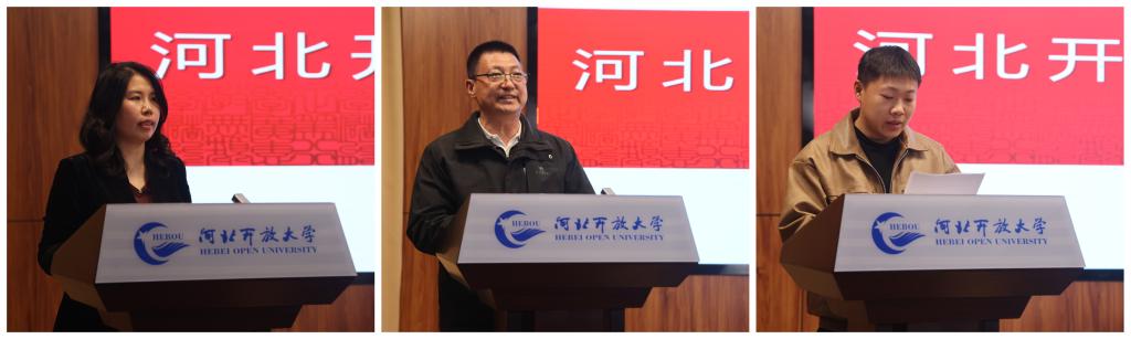 理工學(xué)院教師代表喬海英教授從“改變”“使命”“期望”三個(gè)層面,分享了開放教育的發(fā)展變化、教師角色的變換與初心使命,并對(duì)學(xué)生提出了殷切期望。學(xué)習(xí)之星獲得者郝鴻翔同學(xué)、新生代表張凌松同學(xué)分別作了發(fā)言,表達(dá)了珍惜學(xué)習(xí)機(jī)會(huì)、努力提升自我的決心。