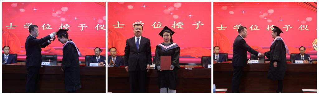 典禮上,校長(zhǎng)田學(xué)斌為13名學(xué)士學(xué)位獲得者代表授予了學(xué)位證書。2名優(yōu)秀畢業(yè)生代表、12名國(guó)家獎(jiǎng)學(xué)金獲得者代表及12名“學(xué)習(xí)之星”代表接受表彰。