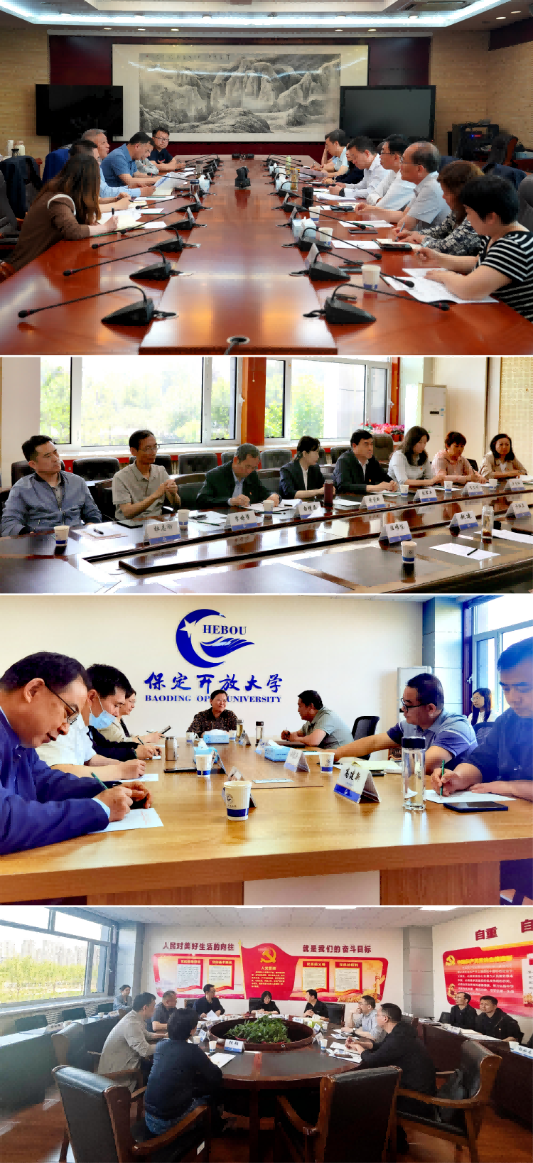 警示教育結束后,全體黨員干部赴保定開放大學開展調研工作。校領導班子成員帶隊分組開展座談調研,對保定開放大學提交的關于進一步全面深化改革的意見建議進行反饋;征求保定開放大學教職工對省校黨員、干部深入貫徹中央八項規定及其實施細則精神的意見建議;圍繞體系建設、教學及教學管理、教學支持服務等內容與保定開放大學干部開展深入交流研討,助推河北開放大學體系高質量發展。