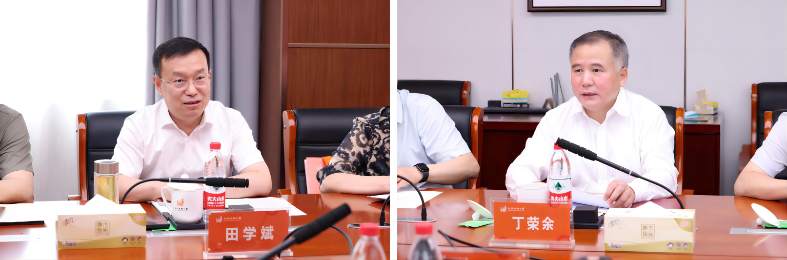 江蘇開放大學黨委書記、校長丁榮余對田學斌一行表示熱烈歡迎,并從學校的歷史沿革、辦學性質、辦學體系、招生規模、數智化建設等方面進行了詳細介紹,希望兩校加強多領域合作,共同促進發展。