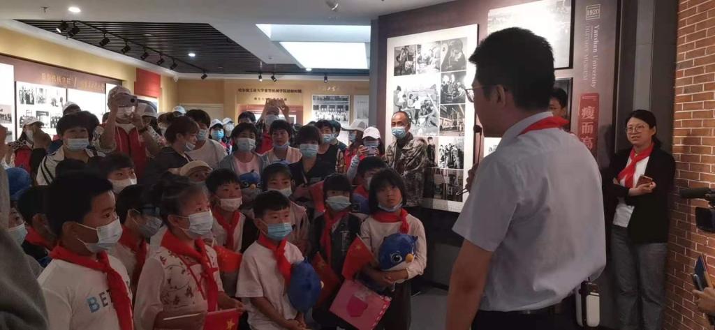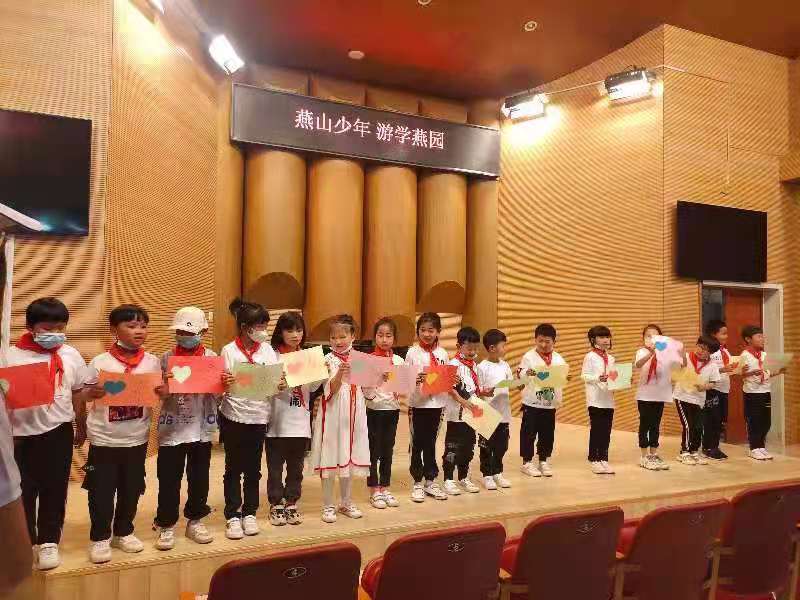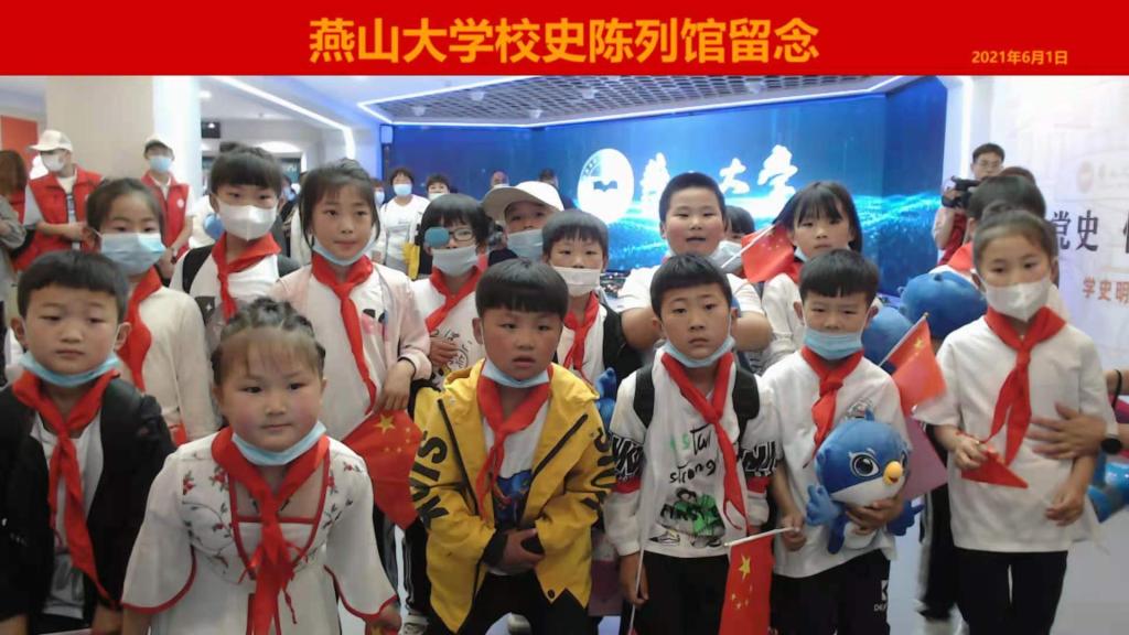 在燕山大學的圖書館門前,國旗護衛隊的大學生們邁著整齊的步伐,護送國旗,莊嚴的國歌中,小學生們行少先隊禮,五星紅旗冉冉升起,“燕山學子,游學燕大”游學活動正式開啟。