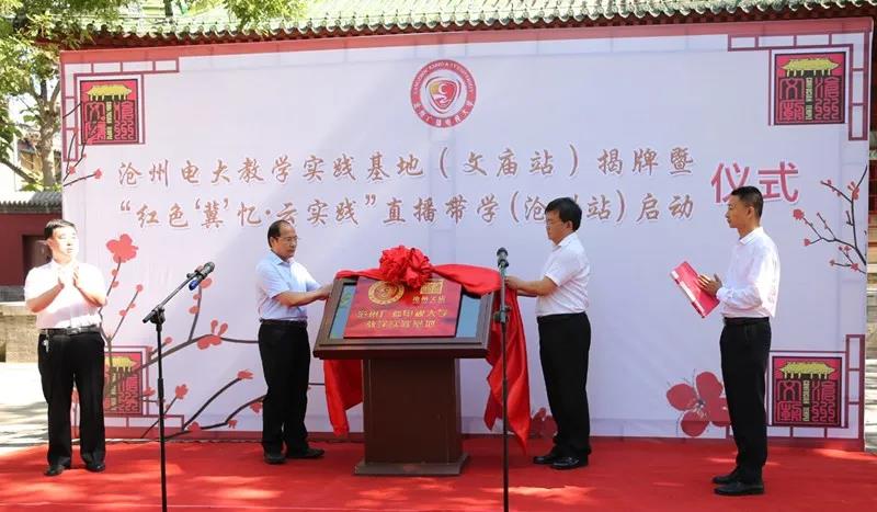 6月4日上午,滄州電大教學(xué)實(shí)踐基地(文廟站)揭牌儀式在滄州文廟舉行,“紅色“冀”憶·云實(shí)踐”直播帶學(xué)(滄州站)活動(dòng)同時(shí)啟動(dòng)。滄州電大黨委副書記、校長崔學(xué)強(qiáng),滄州市文化廣電和旅游局黨組成員、副局長翟成剛出席儀式并為教學(xué)實(shí)踐基地揭牌,翟成剛副局長和滄州電大黨委委員、副校長劉俊民分別在儀式上致辭,滄州電大教研室主任姚小林主持儀式。