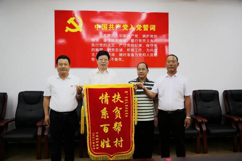 7月2日,獻(xiàn)縣十五級鄉(xiāng)黨委書記韓金彪一行四人代表十五級鄉(xiāng)黨委政府、十五級村兩委及村民,專程赴滄州電大,對學(xué)校在定點(diǎn)扶貧村十五級村的精準(zhǔn)扶貧工作表達(dá)真誠謝意并贈(zèng)送錦旗。滄州電大領(lǐng)導(dǎo)班子和三屆扶貧工作隊(duì)隊(duì)員代表參加贈(zèng)旗儀式,之后雙方就相關(guān)協(xié)作進(jìn)行座談。