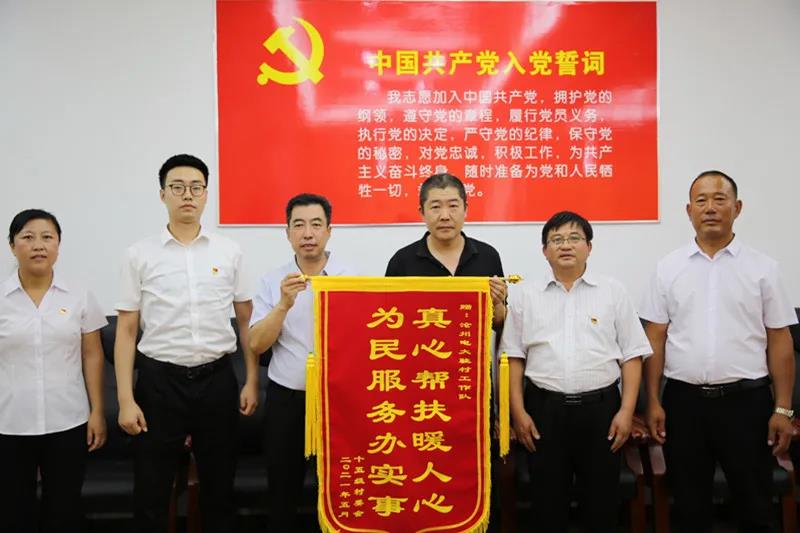 座談會(huì)上,韓金彪向滄州電大黨委表達(dá)了對學(xué)校長期大力幫扶的誠摯謝意,對學(xué)校派出的歷任駐村扶貧干部擔(dān)當(dāng)務(wù)實(shí)、矢志奉獻(xiàn)給予高度贊揚(yáng)。隨后,韓書記就自學(xué)校幫扶工作開展以來村容村貌的改善及十五級村下一步鞏固脫貧攻堅(jiān)成果規(guī)劃進(jìn)行介紹。韓書記說,滄州電大領(lǐng)導(dǎo)班子政治站位高,大局意識(shí)強(qiáng),為歷任駐村扶貧干部的工作提供了堅(jiān)實(shí)的后盾。各位駐村扶貧干部思路新穎,踏實(shí)肯干,與村兩委一同帶領(lǐng)全村上下緊緊抓住國家精準(zhǔn)扶貧和全面推動(dòng)鄉(xiāng)村振興的有利時(shí)機(jī),大膽謀劃,大力弘揚(yáng)“愛國愛家、厚德奉獻(xiàn)、開放包容、務(wù)實(shí)創(chuàng)新、拼搏爭先”的十五級精神,推動(dòng)各項(xiàng)工作齊頭并進(jìn),力爭實(shí)現(xiàn)全村跨越式發(fā)展。韓書記向滄州電大和駐村扶貧工作隊(duì)贈(zèng)送了承載村民深情、寫有“情系百姓 扶貧幫村”和“為民服務(wù)辦實(shí)事 真心幫扶暖人心”的錦旗。
