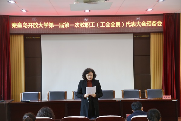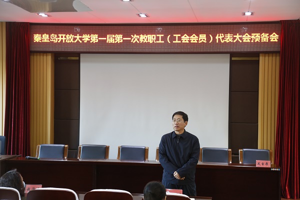 11月11日下午,秦皇島開放大學第一屆教職工(工會會員)代表大會第一次會議的預備會議在秦皇島開放大學一樓報告廳成功召開。34名代表出席會議。會議由工會主席李鵬主持。