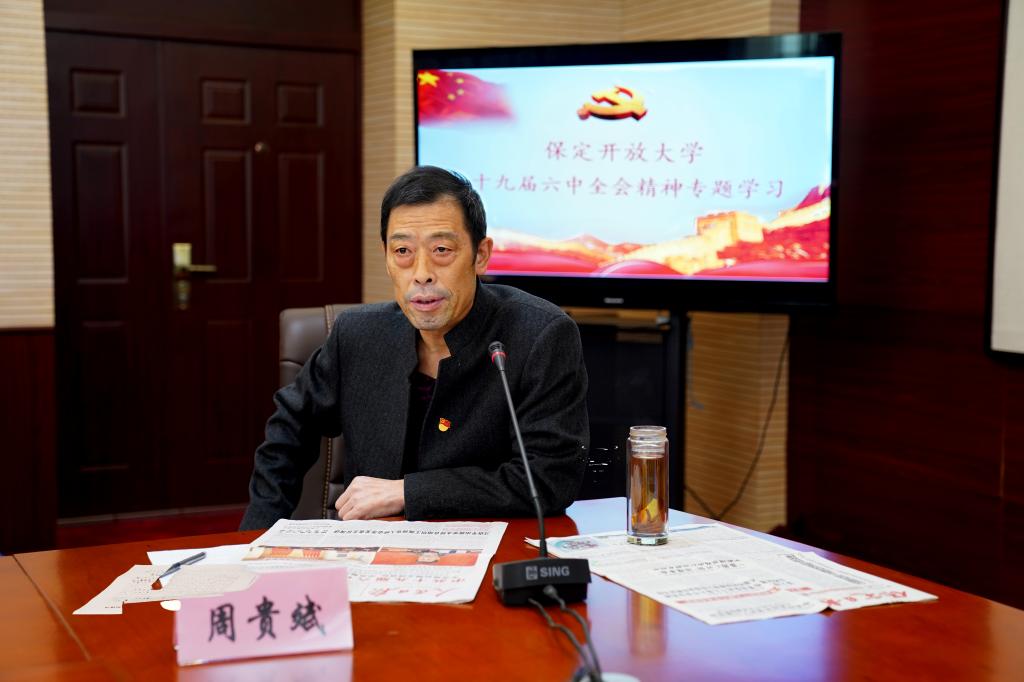 11月18日,保定開放大學召開黨的十九屆六中全會精神專題學習會議,校黨委班子成員、全體中層干部參加學習。黨委書記周貴斌主持會議。