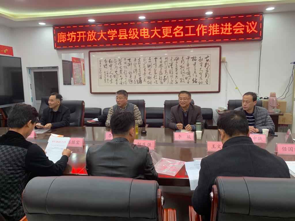 11月19日上午,廊坊開放大學在大城開放大學召開縣級電大更名工作推進會議。廊坊開放大學黨委書記、校長李河均,黨委委員、副校長李琥,副校長姚東升,黨委委員呂中戰出席本次會議,各縣級電大分校主要負責人參加會議。
