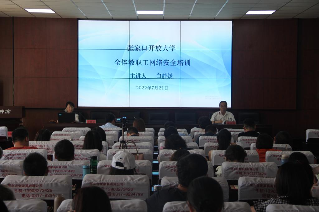 網絡安全是信息化社會的重要基礎,沒有網絡安全就沒有國家安全。網絡安全是事關國家安全和國家發展、事關廣大人民群眾工作生活的重大戰略問題。為進一步提升全體教職工網絡安全意識,豐富網絡安全知識,增強做好網絡安全工作本領,根據中共張家口開放大學委員會《2022年黨政工作要點》和《2022年網絡安全工作方案》,7月21日,張家口開放大學舉辦了網絡安全知識培訓。校黨委書記楊汝明,黨委副書記、校長張宏文,黨委委員、副校長黃永亮、張麗桃、陳瑞芬,黨委委員、紀委書記高海琴,以及全體教職工參加了培訓。