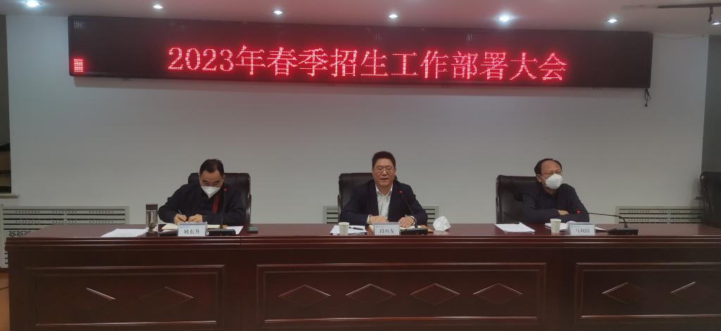 黨委副書記、校長馬利國宣讀了2023年春季招生工作方案。方案對建立健全招生制度、招生工作目標、具體招生措施、開設(shè)專業(yè)、招生方式等提出了明確要求。