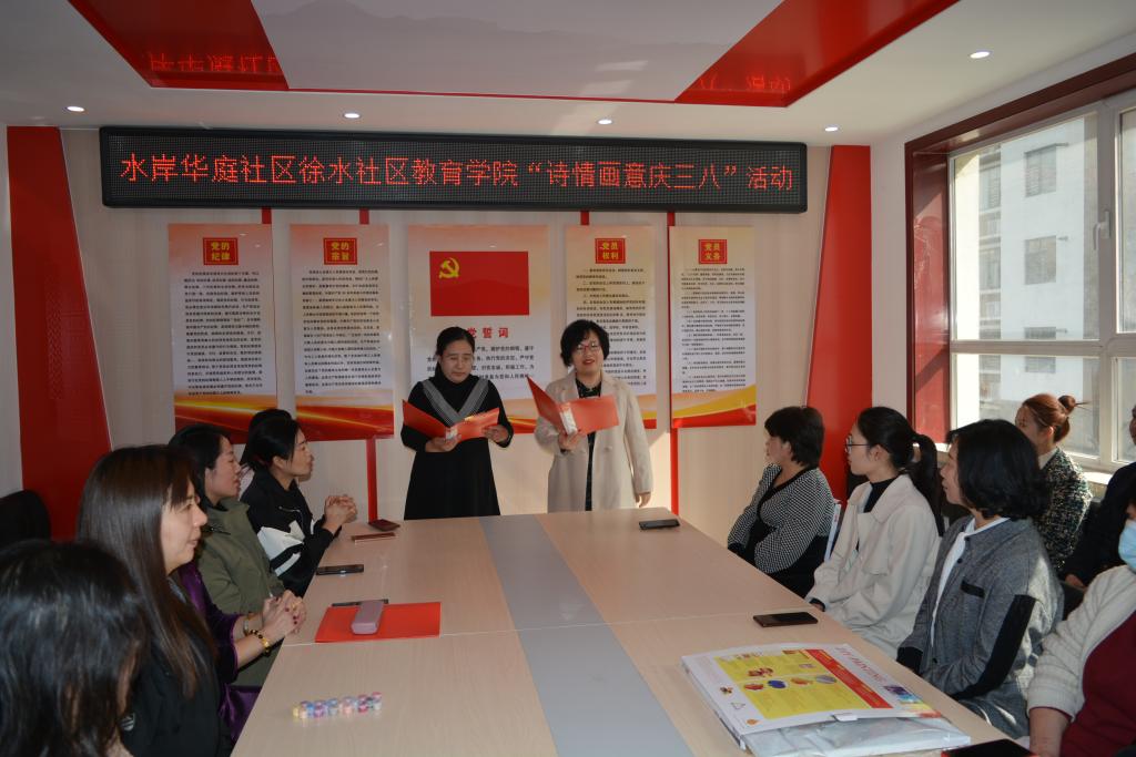 3月7日下午,徐水開放大學(xué)聯(lián)合水岸華庭社區(qū),在水岸華庭社區(qū)黨員活動(dòng)室舉辦了“詩(shī)情畫意慶三八”活動(dòng),徐水城區(qū)辦事處高永芳主任,徐水開放大學(xué)工作人員,水岸華庭社區(qū)服務(wù)人員及部分居民參加活動(dòng)。