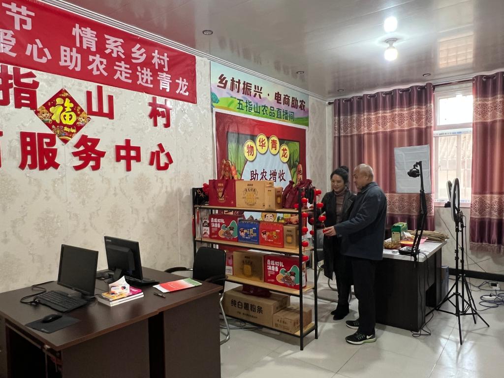3月30日,秦皇島開放大學紀檢書記李鵬一行來到五指山村,檢查駐村工作隊的駐村工作,調研村電商發展情況。