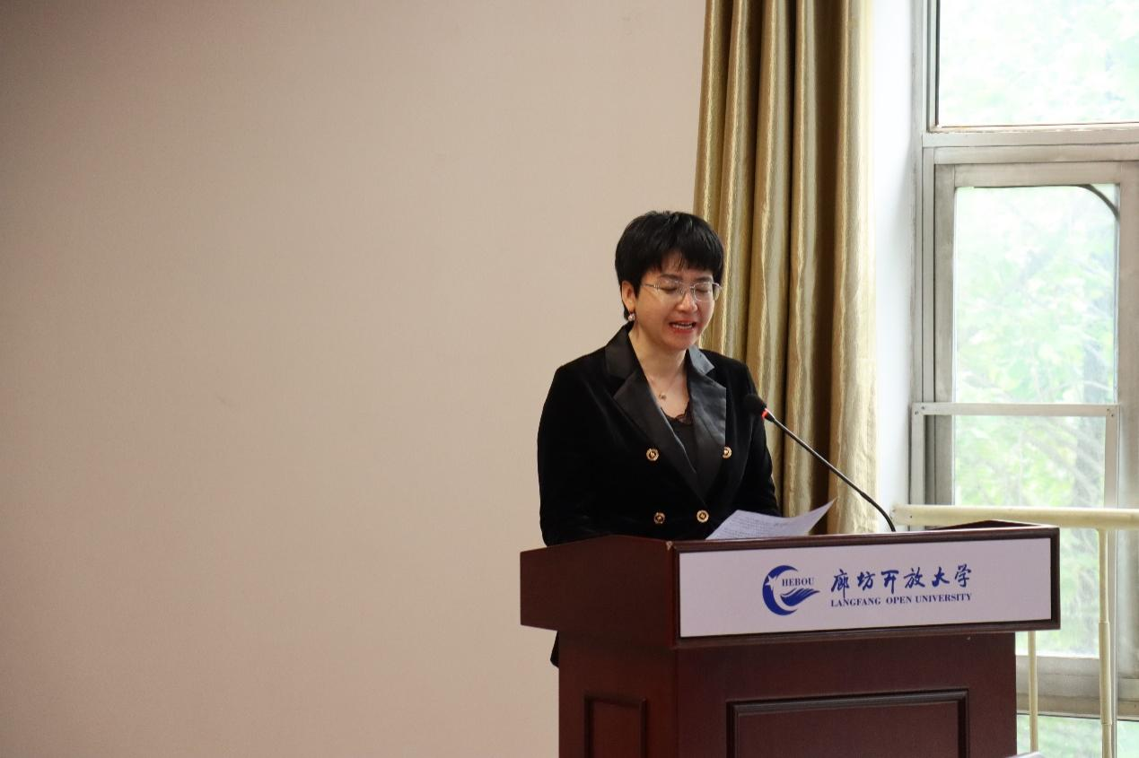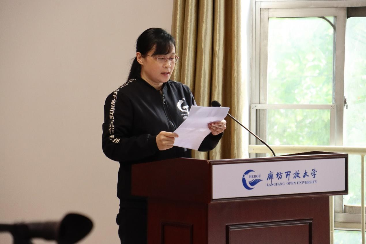 河北省人大代表、開放教育部孔英蕾作為教師代表,介紹了開放教育學習的特點,希望學員們轉變觀念、提高自主學習的積極性,盡快適應新型的學習模式。同時表達了我校教師將竭盡全力為學員提供服務和幫助的決心。