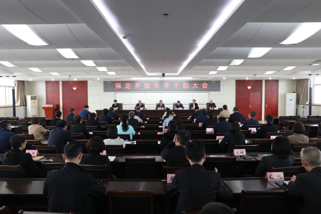 4月27日下午,保定開放大學(xué)在十樓會(huì)議室召開干部大會(huì),宣布保定市委關(guān)于學(xué)校黨委書記、校長的任免決定。保定市委組織部部務(wù)會(huì)成員、二級(jí)調(diào)研員成月軍,市委組織部干部四處處長、一級(jí)主任科員沈海清出席會(huì)議。學(xué)校黨委班子成員、全體中層干部及高級(jí)職稱教師代表參加會(huì)議,會(huì)議由保定開放大學(xué)原黨委書記周貴斌主持。