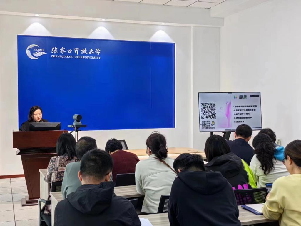 5月4日,張家口開放大學(xué)在培訓(xùn)中心直播教室開展了教師直播教學(xué)培訓(xùn)活動。校長張宏文、副校長張麗桃、副校長周穎、教學(xué)科研處、網(wǎng)絡(luò)中心及全體任課教師參加了培訓(xùn)。培訓(xùn)由教學(xué)科研處副處長鄭博主持。
