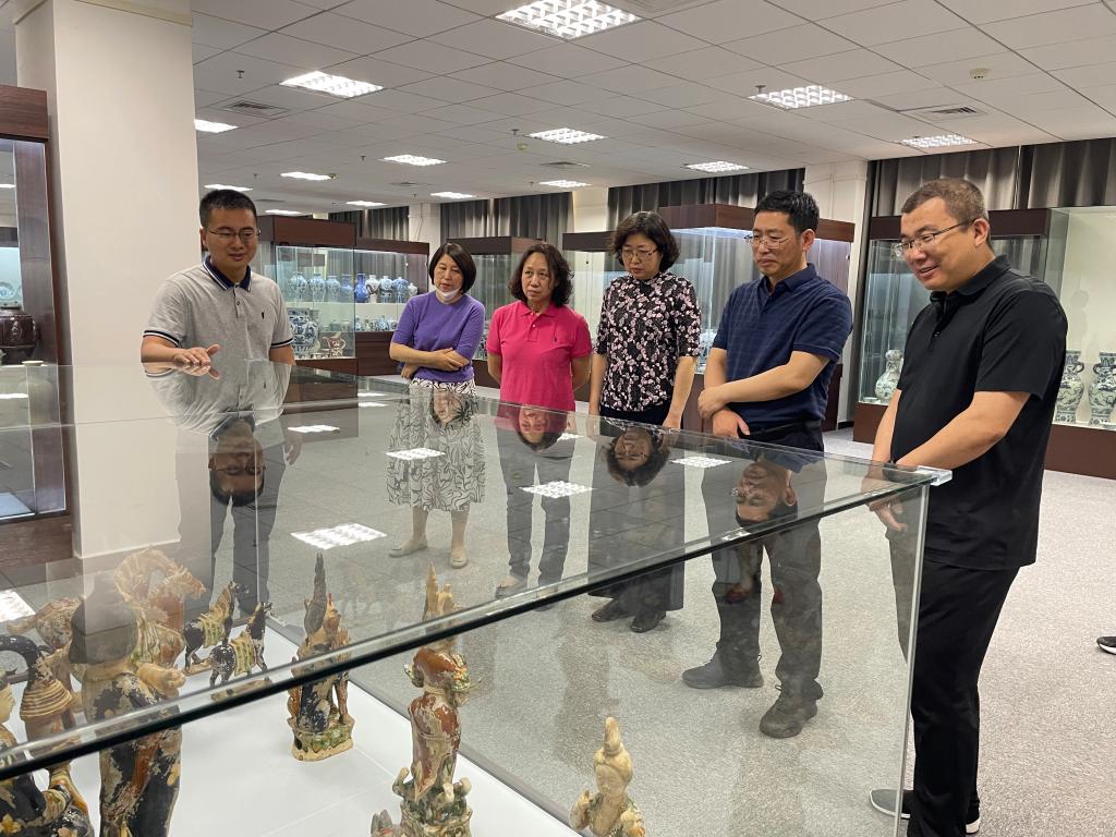 啟動儀式開始之前,大家一起參觀了東北大學(xué)秦皇島分校民族學(xué)學(xué)院的博物館,博物館展廳面積409平方米,收藏文物展品3000件。設(shè)有瓷器館、滿族民俗館、農(nóng)具館、剪紙館、滿文書法館5個專題展館。講解老師帶領(lǐng)開放大學(xué)的老師們依次參觀并進(jìn)行了細(xì)致的講解。踏入瓷器館,承載在這物質(zhì)文化長河之中的工藝,似乎將一個個朝代串聯(lián)起來;聆聽農(nóng)具館的講解,仿佛置身于白山黑水之間,體驗(yàn)著游牧漁獵與農(nóng)耕文化之間的碰撞交融;駐足滿族民俗館,薩滿的低語,旗袍的曲線,旗地的契約,依約在腦海之中勾勒;移步于剪紙館,在驚嘆中華兒女心靈手巧;最后來到滿文書法館,只覺在滿漢合璧之下,文脈生生不息,庚續(xù)相傳。展館以實(shí)物素材講述中國故事和民族故事,詮釋中華文化多元一體性和鑄牢中華民族共同體意識思想理論的歷史基礎(chǔ)。參觀活動使老師們收獲良多。