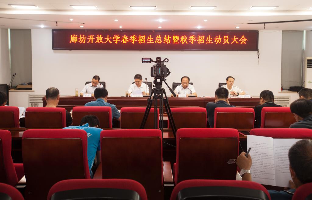 7月5日上午,廊坊開放大學召開2023年春季招生總結暨秋季招生動員大會,校黨委書記段再友,黨委副書記、校長馬利國,黨委委員呂中戰,各縣級開放大學主要負責同志、分管招生工作的副校長、招辦主任及市校各科室負責人參加了會議,會議由黨委委員、副校長姚東升主持。