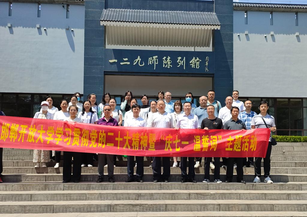 2023年是中國共產黨成立102周年,是全面貫徹落實黨的二十大精神開局之年。為了更加深入了解黨的光輝歷史,謳歌黨的豐功偉績,繼承和弘揚黨的光榮傳統和優良作風,扎實開展好學習貫徹習近平新時代中國特色社會主義思想主題教育,按照市委教育工委的安排部署,七一前夕,邯鄲開放大學組織全體黨員開展了學習貫徹黨的二十大精神暨“慶七一 溫誓詞”系列活動。