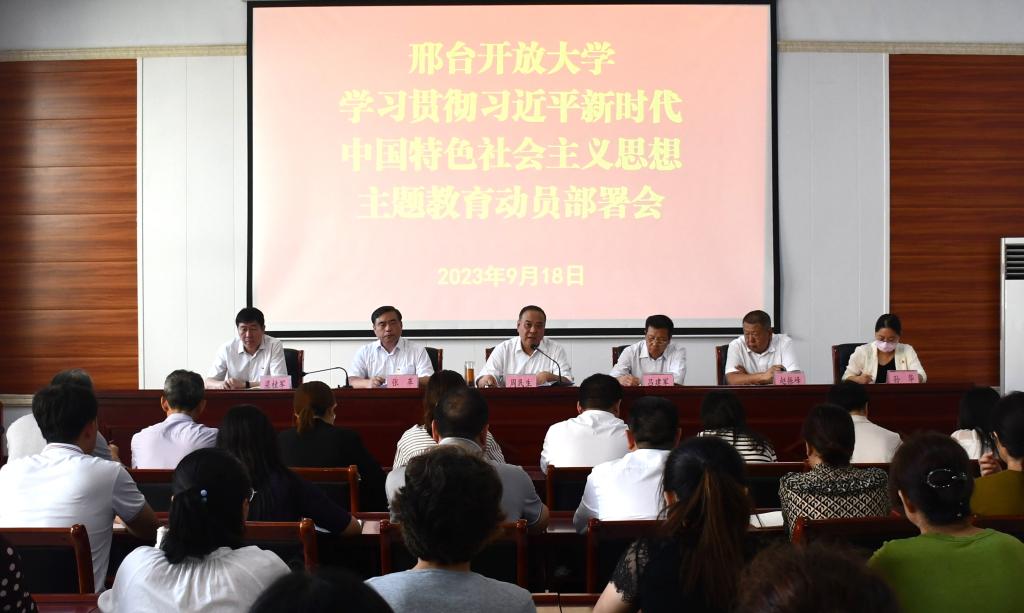 9月18日,邢臺開放大學召開學習貫徹習近平新時代中國特色社會主義思想主題教育動員部署會。黨委書記周民生作動員講話。黨委班子成員、各部門負責同志、全體在職黨員和離退休黨員代表共計50余人參加會議。