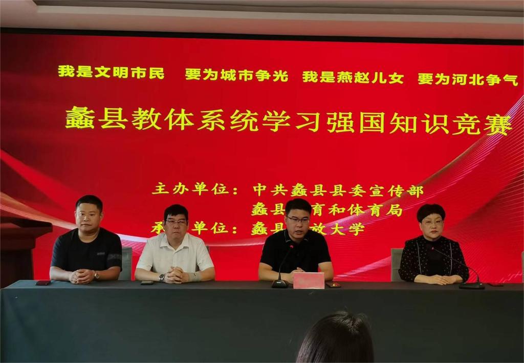 9月20日上午,蠡縣教體系統“學習強國”知識競賽在蠡縣開放大學社區禮堂舉行,來自35所學校的77名教師參加比賽。本次活動由中共蠡縣縣委宣傳部和蠡縣教體局聯合主辦,蠡縣開放大學承辦。縣委常委、宣傳部部長孟慶飛,宣傳部部務會成員田彥寧,教體局黨委辦主任王興,蠡縣開放大學校長劉偉出席活動。