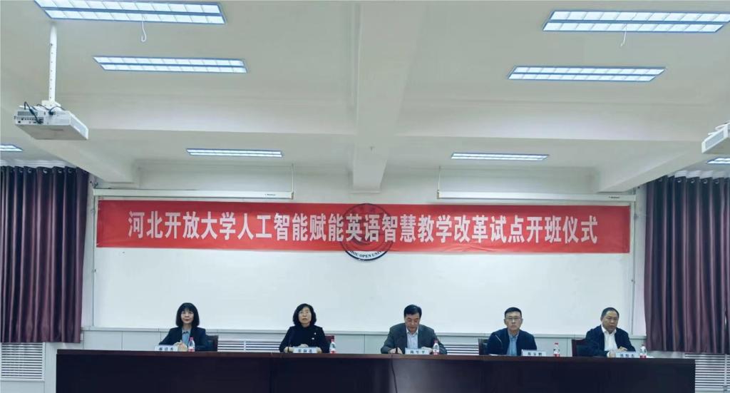 10月30日,河北開放大學(xué)人工智能賦能英語(yǔ)智慧教學(xué)改革試點(diǎn)開班儀式在滄州開放大學(xué)舉辦并對(duì)全省開展網(wǎng)上直播。國(guó)家開放大學(xué)外語(yǔ)教學(xué)部部長(zhǎng)鄭霽鵬、河北開放大學(xué)副校長(zhǎng)陳軍平出席儀式并講話,滄州開放大學(xué)黨委書記熊俊杰、校長(zhǎng)郝清秀出席儀式,國(guó)開、省校有關(guān)部門負(fù)責(zé)人及邯鄲開放大學(xué)、滄州開放大學(xué)的領(lǐng)導(dǎo)及師生代表參加活動(dòng),河北開大教學(xué)支持部主任張淑蓮主持儀式。