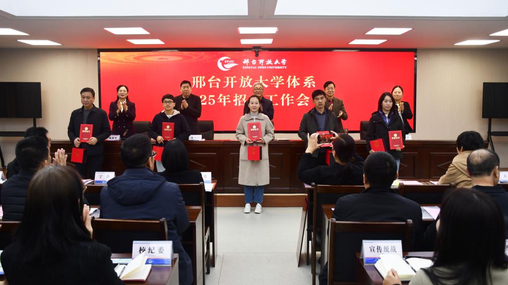 會上,黨委副書記霍秀申宣讀了《邢臺開放大學關于表彰2024年度開放教育招生工作先進集體、先進個人的決定》,領導班子為招生工作先進集體和先進個人頒發(fā)了獎牌和證書,先進集體代表威縣開放大學副校長胡金濤、先進個人代表隆堯開放大學校長徐璟琨和寧晉開放大學教師賈玲分別作了典型發(fā)言,黨委委員、副校長楊密婷對2025年招生工作進行了安排部署。