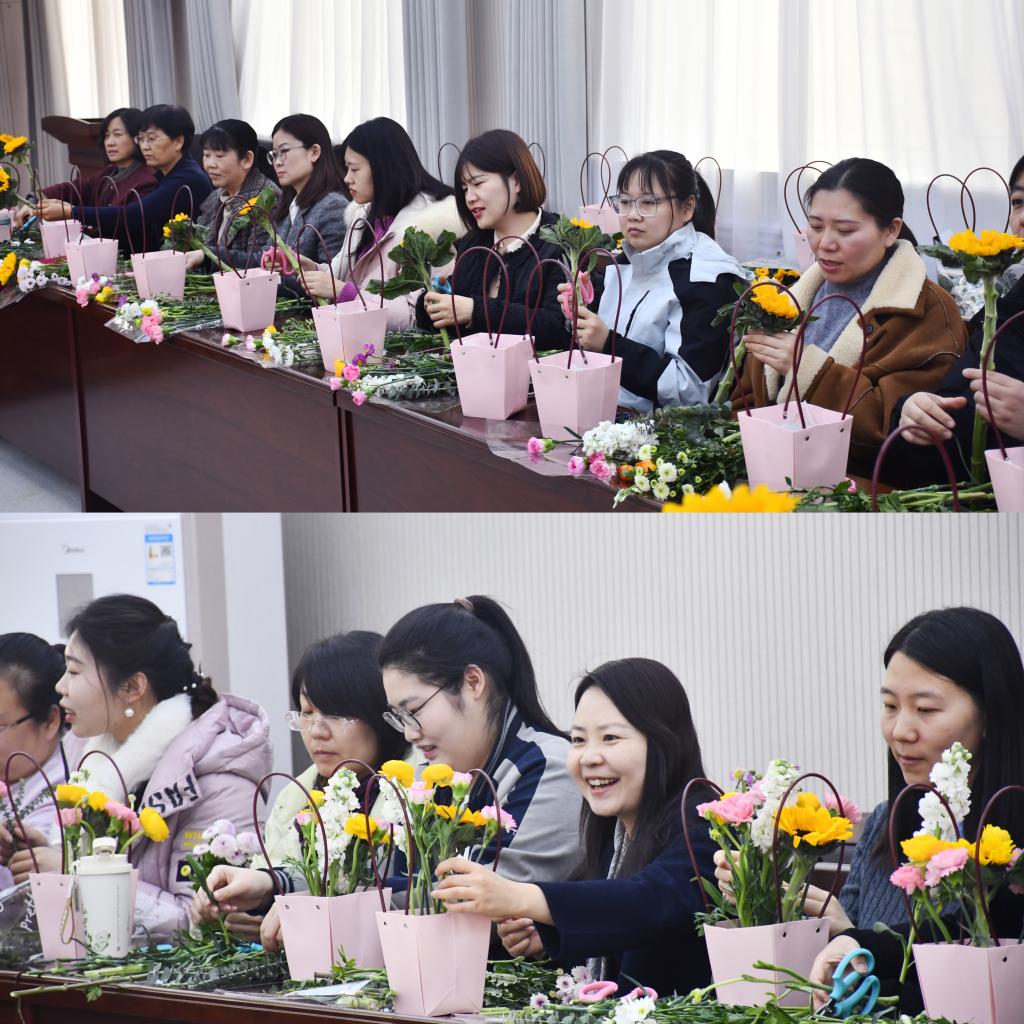 活動現(xiàn)場,女教職工們滿懷熱情,以花為媒,以心傳情,投入到插花藝術(shù)的創(chuàng)作之中。她們精心挑選花材,巧妙構(gòu)思布局,每一束花、每一個花籃都蘊(yùn)含著對美的追求與生活的熱愛。在輕松愉悅的交流與學(xué)習(xí)中,一件件匠心獨(dú)運(yùn)的花藝作品應(yīng)運(yùn)而生,展現(xiàn)出學(xué)校女教職工們細(xì)膩的藝術(shù)感知與創(chuàng)造力。