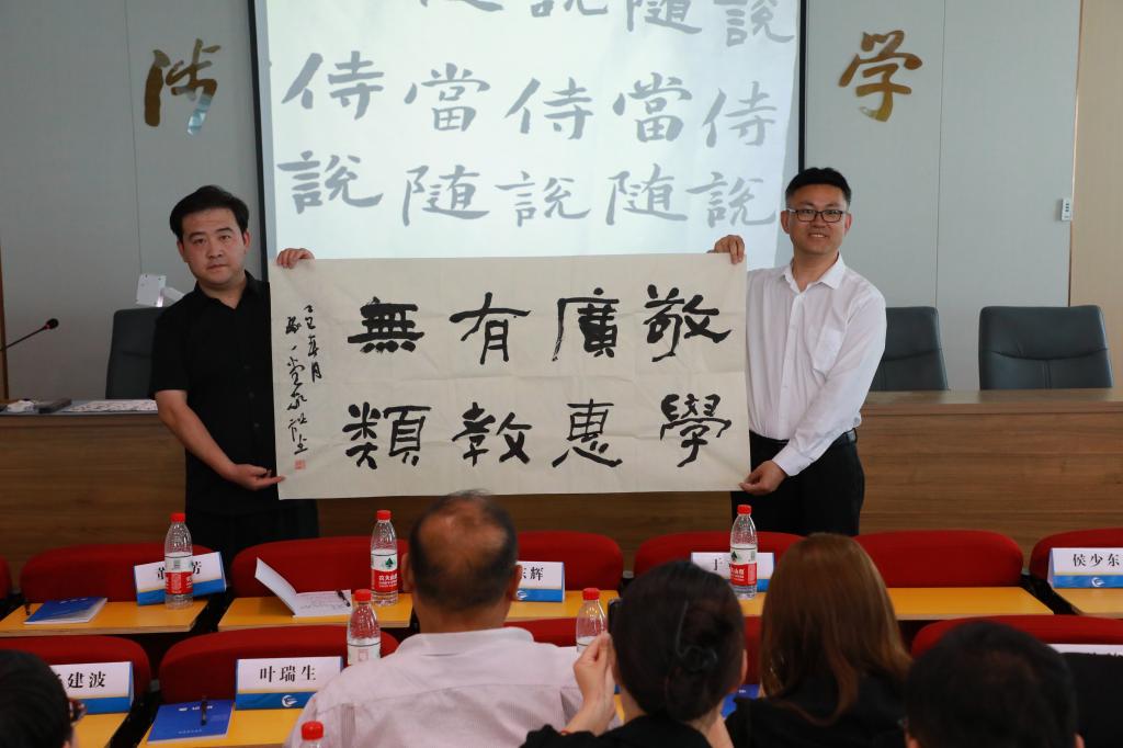 活動現場,涉縣教體局主管領導王喜生向王凱旋教授頒發“書法客座教授”聘書,正式聘請王教授為涉縣開放大學書法教育指導專家。