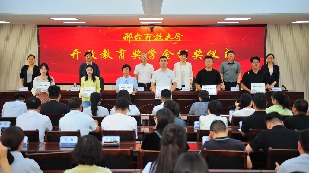 5月28日上午,邢臺開放大學舉行開放教育獎學金頒發儀式,為78名獲國家開放大學獎學金的學生頒發了獎金。儀式由校長劉彥君主持,黨委書記宗召偉出席儀式并講話,校領導霍秀申、梁桂軍、孫華、楊密婷和全體班主任老師以及獎學金獲得者代表共計70余人參加了儀式。