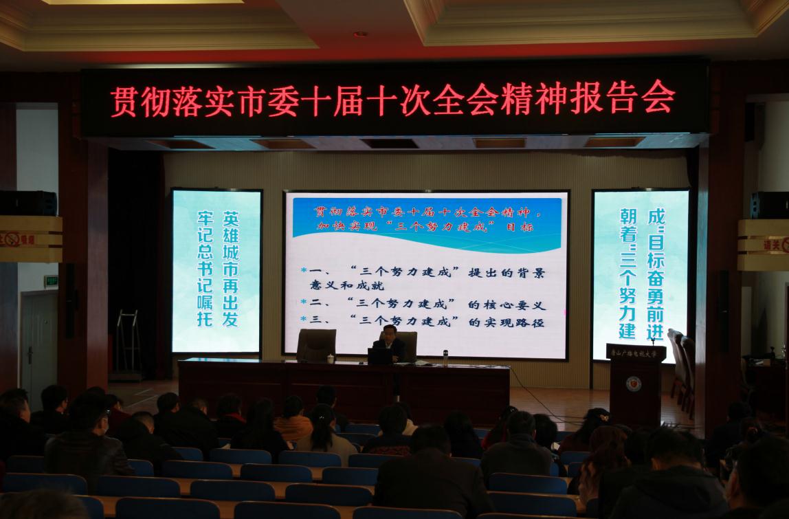 今年是習(xí)近平總書記為唐山做出“三個(gè)努力建成”重要指示十周年,為深入學(xué)習(xí)習(xí)近平總書記“三個(gè)努力建成”的重要指示精神和市委十屆十次全會(huì)精神,11月9日,唐山電大舉行“貫徹落實(shí)市委十屆十次全會(huì)精神加快實(shí)現(xiàn)‘三個(gè)努力建成’目標(biāo)”知識(shí)講座。特邀請(qǐng)市委黨校高民杰教授講授,黨委書記、校長郝廣友出席講座。講座由黨委委員、辦公室主任楊靜主持。