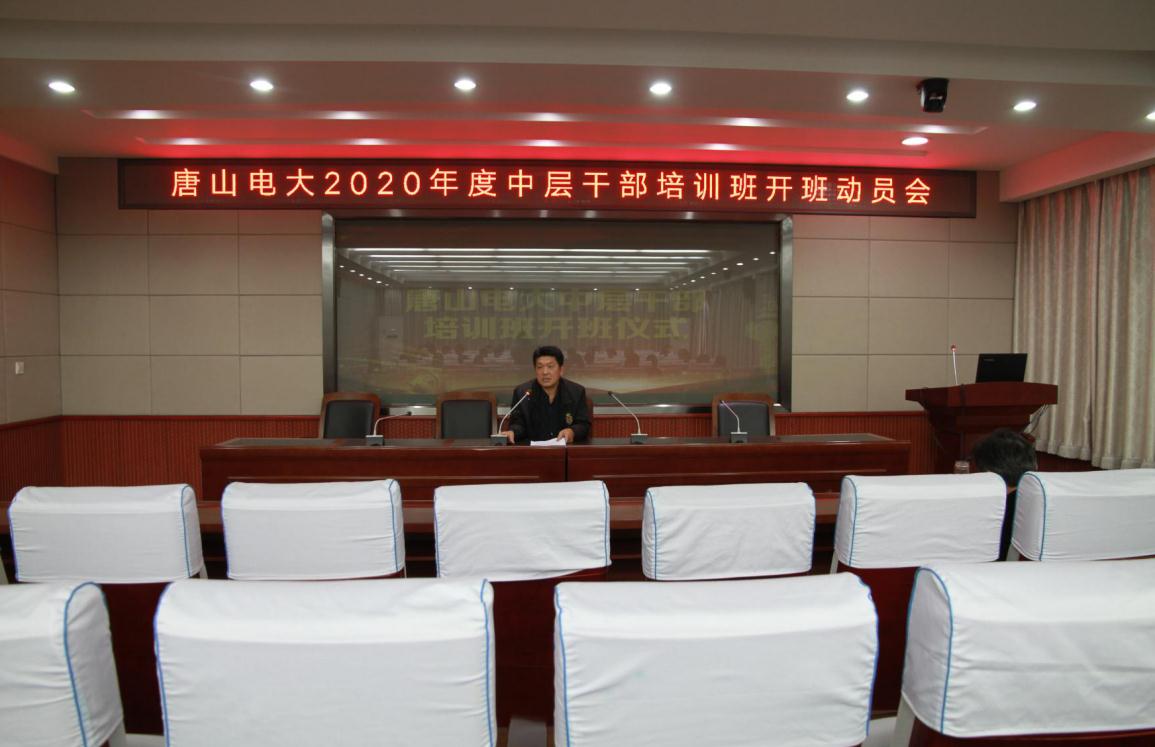 11月10日下午唐山電大2020年中層干部培訓班開班。黨委書記、校長郝廣友作動員講話。市管優秀專家、社科專家、市委黨校高民杰教授以《提高領導干部的執行力》為題作專題講座。全校中層干部、黨支部書記、部長參加了會議。