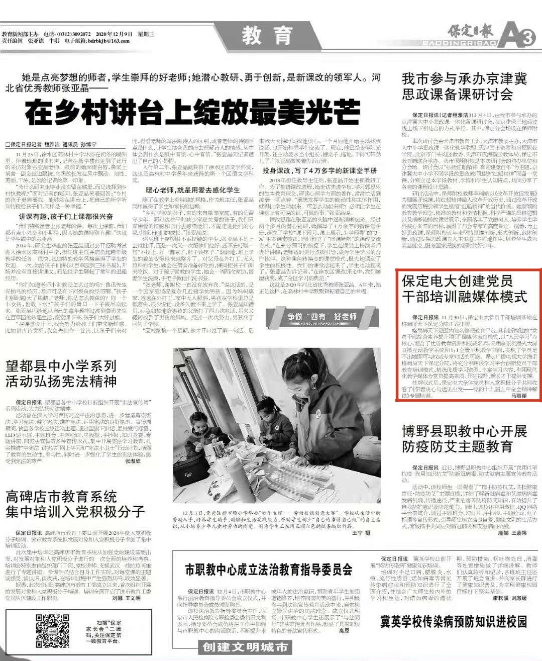 11月30日,保定電大黨員干部培訓(xùn)基地在格局屏天下保定分院正式掛牌。