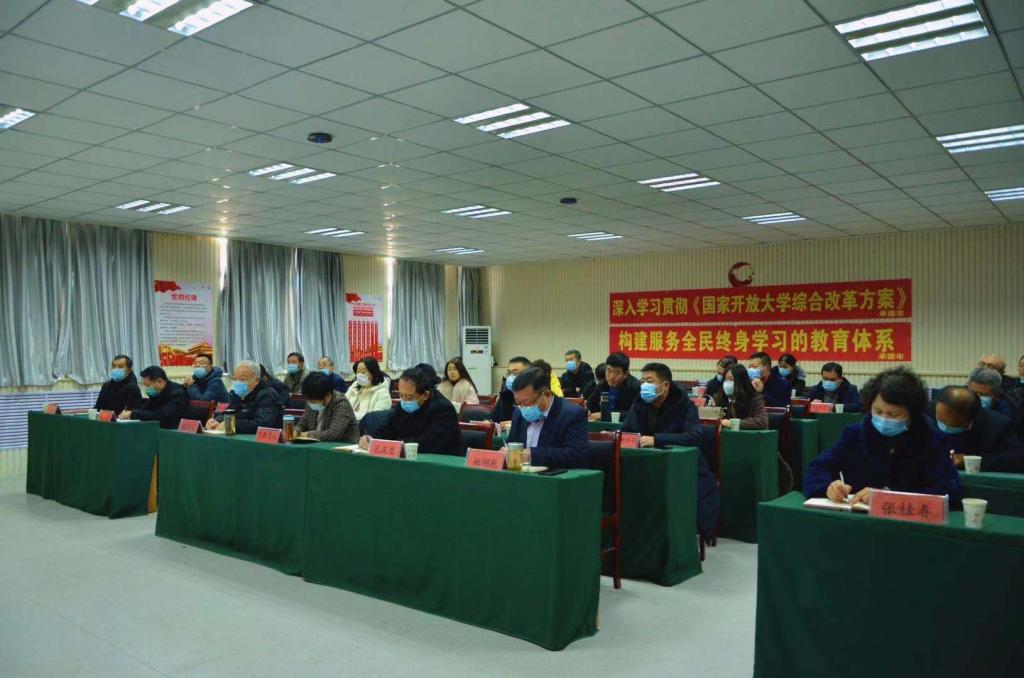 12月19日上午,承德廣播電視大學(xué)組織觀看河北開放大學(xué)轉(zhuǎn)型發(fā)展推進(jìn)會。承德市人大常委會副主任、承德廣播電視大學(xué)校長孔慶龍,承德市教育局副局長楊玉艷,承德電大黨委書記姚鋼乾,承德電大黨委副書記張閣玉,承德電大副校長張桂春,承德電大紀(jì)委書記楊永明,承德電大黨委委員吳樹祥,承德市教育局職成教科科長喬志遠(yuǎn)以及各縣(市、區(qū))教育局局長、相關(guān)科(處)室負(fù)責(zé)人、縣(市、區(qū))電大校長(負(fù)責(zé)人)出席承德電大分會場一同見證這個具有里程碑意義的歷史時刻。