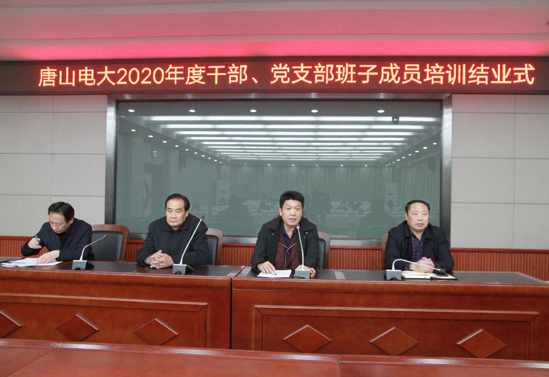 2021年1月8日,唐山電大召開2020年度干部、黨支部班子成員培訓結業式,為近兩個月的培訓工作畫上一個圓滿的句號。黨委書記、校長郝廣友,黨委委員、副校長牟景文,黨委委員、紀委書記吳萬林,副校長李春儒出席結業式。結業式由思政處處長王愛榮主持。