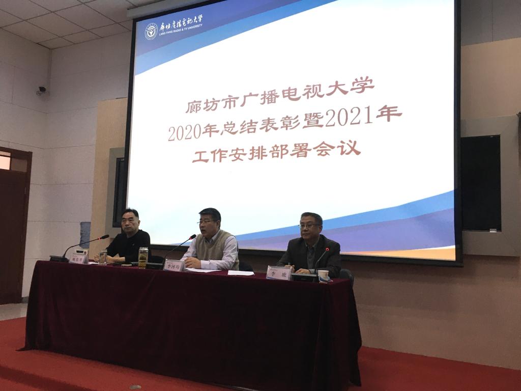 會上,李河均從學(xué)校政治思想建設(shè)、疫情防控、招生工作、社區(qū)教育、教學(xué)科研、校園安全、系統(tǒng)建設(shè)等幾個方面對學(xué)校2020年的工作進行了簡要總結(jié),并對學(xué)校2021年的重點工作進行安排部署。他談到,2021年,將迎來電大發(fā)展歷史上重要的時刻——廊坊廣播電視大學(xué)將更名為廊坊開放大學(xué)。這一時刻必將載入史冊。更名后的開放大學(xué)作為市屬高等學(xué)校,其定位是服務(wù)全民終身教育,其職能是開展學(xué)歷教育和非學(xué)歷教育。發(fā)展目標(biāo)是運用現(xiàn)代信息技術(shù)建設(shè)集教學(xué)、管理、服務(wù)功能于一體的全民終身公共服務(wù)平臺。