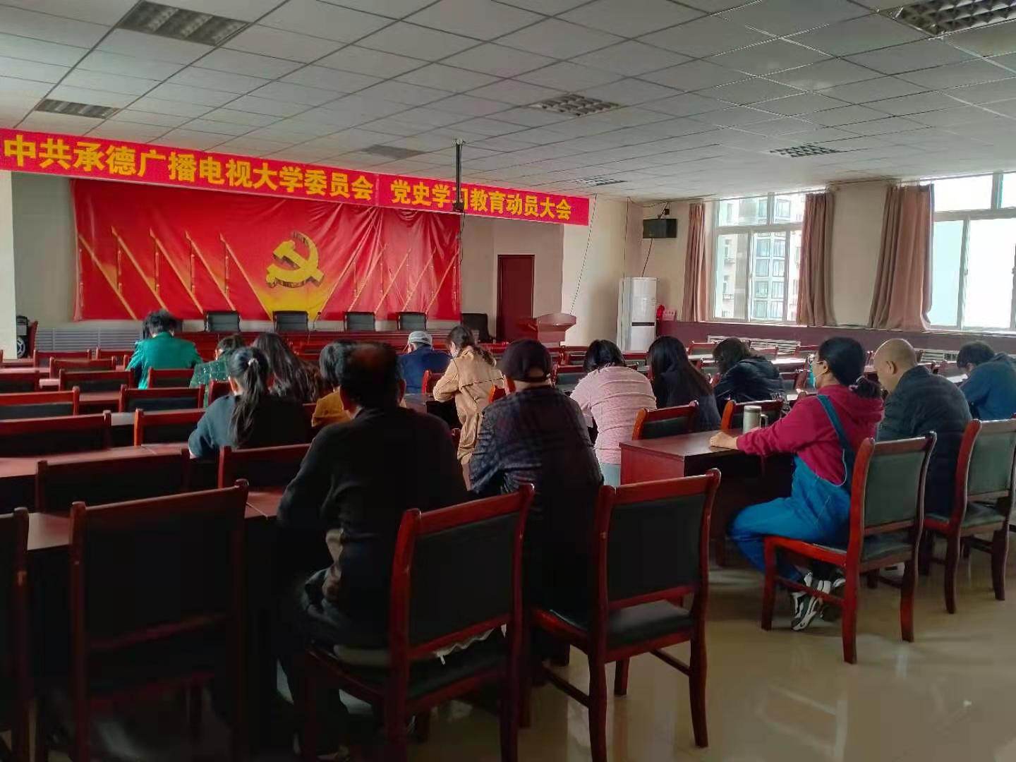 按照承德電大黨委學習黨史系列活動安排部署,4月1日下午,學校黨委以支部或部門為單位的形式組織全體教職工收聽收看黨史學習教育中央宣講團首場報告會。