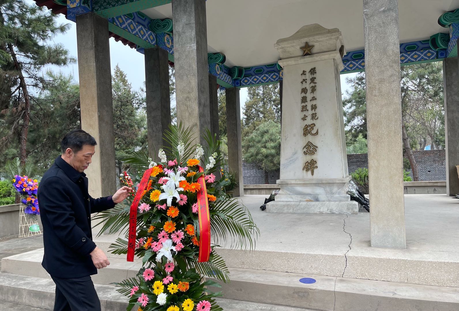保定紅二師紀念館由河北省立第二師范學校舊址和“七·六”烈士紀念園兩部分組成。在“七·六”烈士紀念園,全體黨員整齊排開,瞻仰烈士紀念碑,為烈士獻上鮮花,寄托哀思。在烈士紀念碑前,黨委書記周貴斌帶領大家重溫“七·六”烈士的英雄事跡,號召大家要銘記為中華民族復興不惜獻出生命的英雄們,傳承紅色基因,將敢于斗爭的革命精神化為前行的力量。