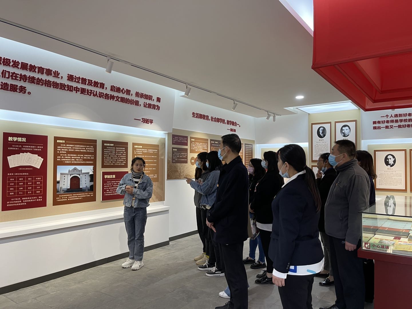 祭掃結束后,全體黨員共同參觀了紅二師紀念館。紀念館古樸莊嚴,靜謐凝重,共有展室16間,分“啟迪民智 嚴謹治學”“革新體制 思潮涌起”“投身革命 獻身真理”“不忘初心 弘揚傳承”四個篇章。通過照片、視頻、實物以及豐富的文獻資料,輔以現代科技元素,完整地將學校共產黨員團結進步,學生開展愛國護校斗爭的光輝歷史生動地呈現在眼前。伴隨著講解員的講解,大家了解了紅二師悠久的辦學歷程、深厚的文化底蘊和光榮的革命傳統。