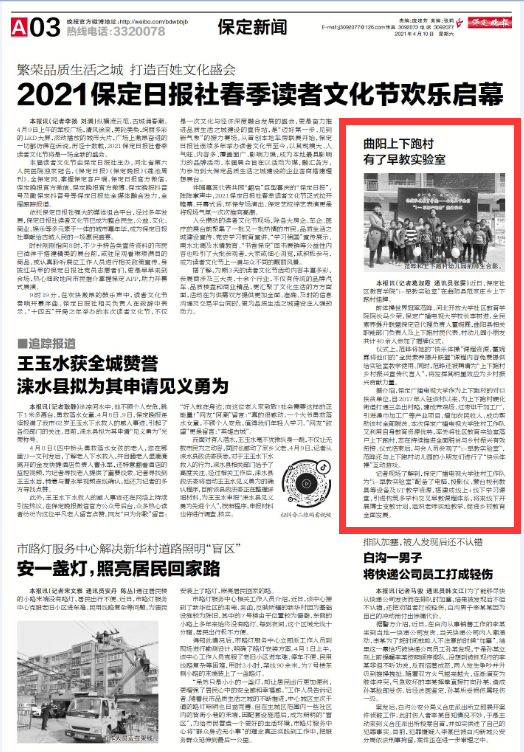 在鞏固拓展脫貧攻堅(jiān)成果,接續(xù)推動(dòng)脫貧地區(qū)發(fā)展和鄉(xiāng)村全面振興的關(guān)鍵時(shí)期,保定社區(qū)教育學(xué)院率先發(fā)力、精準(zhǔn)施策,以“鄉(xiāng)村振興,教育先行”為切入點(diǎn),在曲陽(yáng)縣上下跑村掛牌全省首家農(nóng)村社區(qū)教育實(shí)驗(yàn)室——“i-早教實(shí)驗(yàn)室”,邀請(qǐng)?bào)w操世界冠軍范曄“快樂(lè)體操”入駐并為上下跑村鄉(xiāng)村振興代言。這是發(fā)揮學(xué)校優(yōu)勢(shì)開(kāi)展精準(zhǔn)扶貧、教育扶貧的有益嘗試,也是鞏固拓展脫貧攻堅(jiān)成效、有效銜接鄉(xiāng)村振興的有益探索,更是發(fā)展公平而有質(zhì)量的教育、開(kāi)展農(nóng)村社區(qū)教育的有益實(shí)踐。中國(guó)教育在線、唐堯網(wǎng)、保定晚報(bào)、保定電視臺(tái)等媒體對(duì)此進(jìn)行報(bào)道。