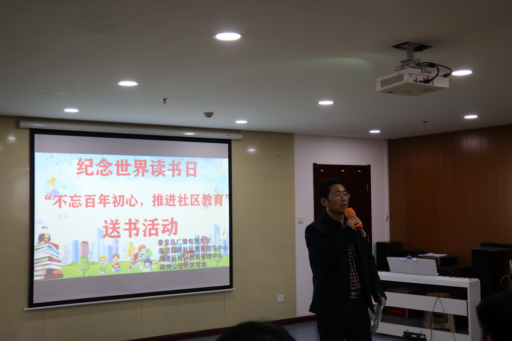 白塔嶺街道辦事處主任孟凡杰做了表態發言,隨后海悅公館社區居民代表接受了贈書。包括秦皇島電大的教師們精心編撰的《社區教育讀本系列叢書》《論中國共產黨歷史》《國學經典青少年讀本》等300余本書籍受到了大家的歡迎。