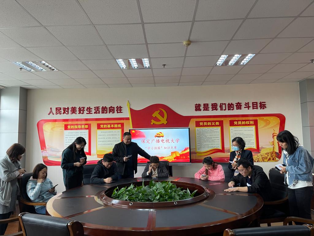 為進一步提升黨員同志利用“學習強國”平臺充實理論知識的積極性,持續推動黨史學習教育往深里走、往實里走、往心里走。4月30日,保定電大在黨員活動室舉辦“學習強國”知識競賽活動。