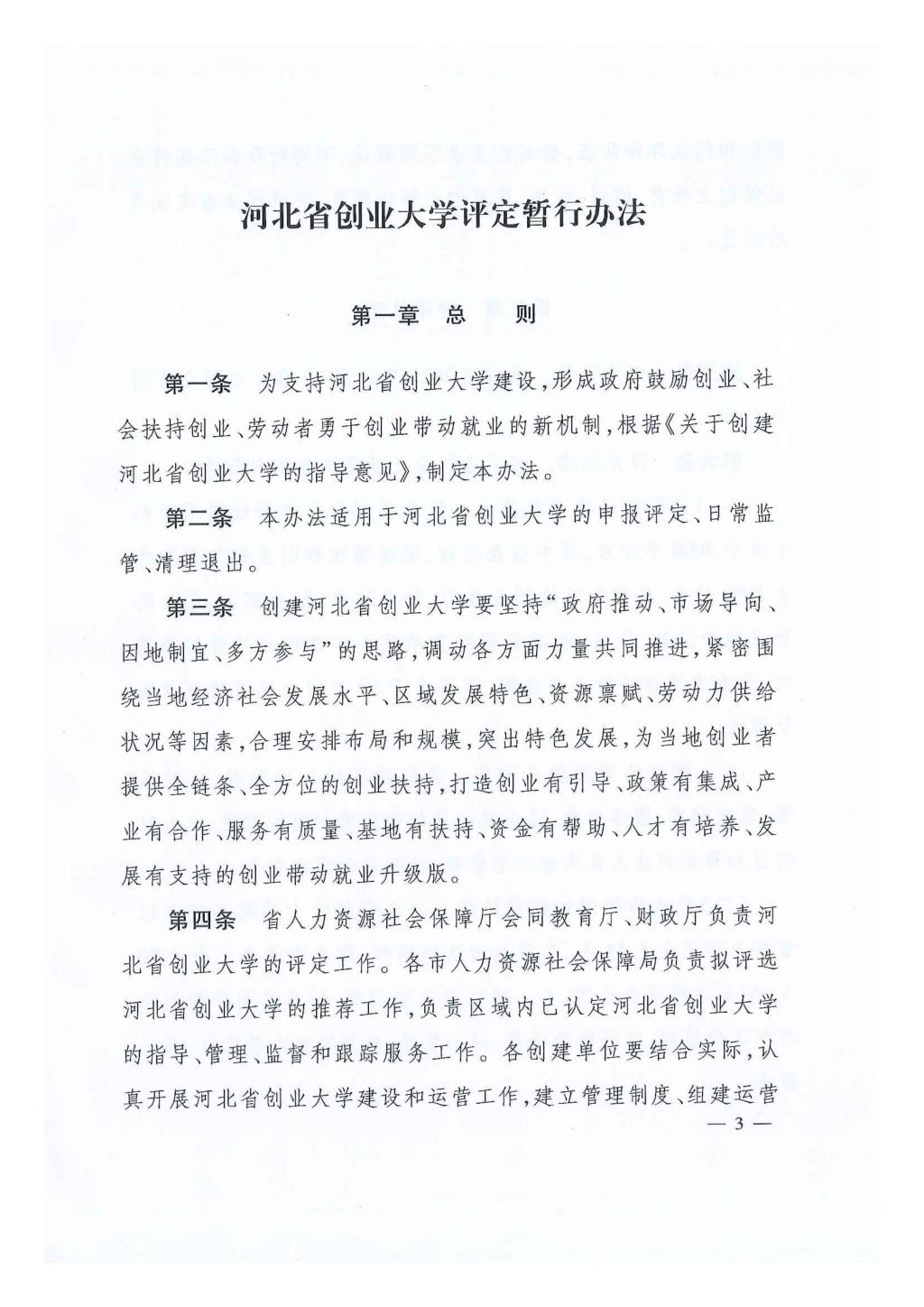 河北省人力資源和社會保障廳 河北省教育廳 河北省財政廳關于印發《河北省創業大學評定暫行辦法》的通知