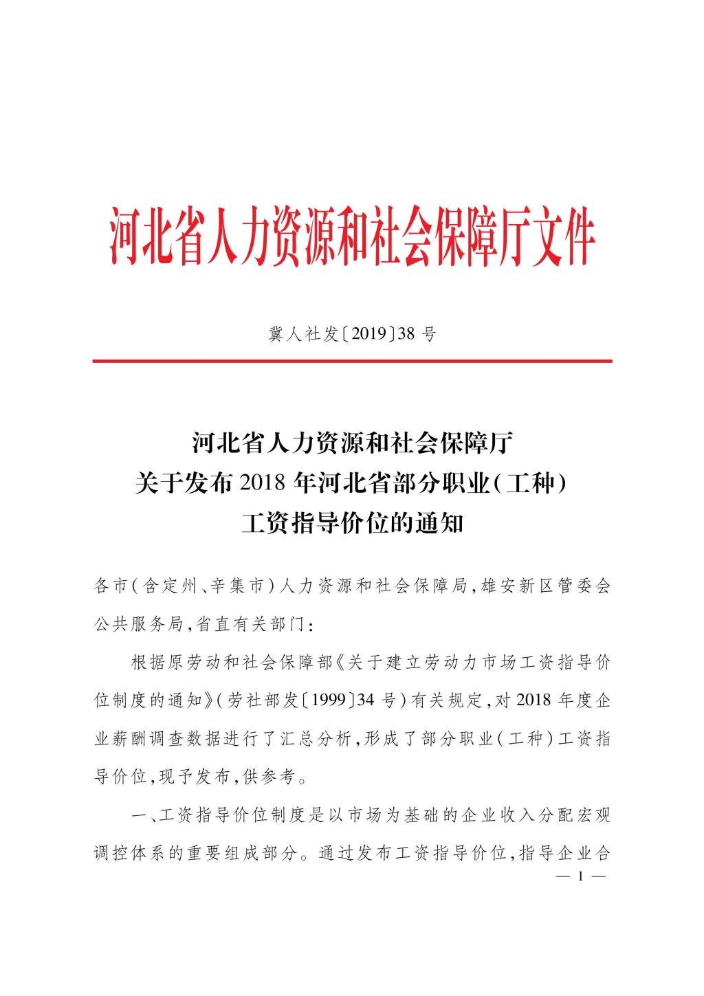 關(guān)于發(fā)布2018年河北省部分職業(yè)(工種)工資指導(dǎo)價(jià)位的通知