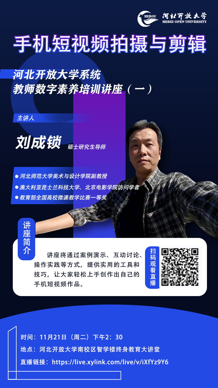 為了認真貫徹落實教育部《教師數字素養》標準,提升教師利用數字技術優化、創新教學活動的能力,我校將舉辦河北開放大學系統教師數字素養系列培訓。首次講座具體安排如下: