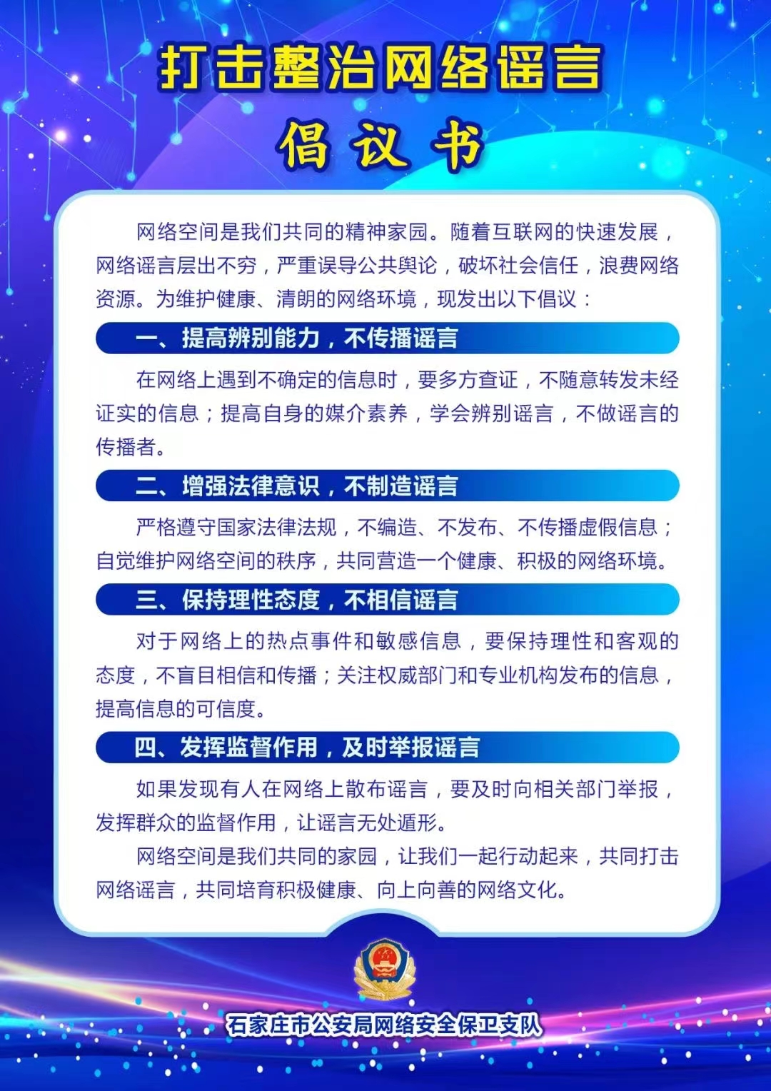 打擊整治網絡謠言倡議書