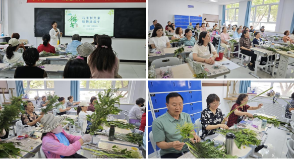 五月榴花照眼明,艾香氤氳滿校園。5月29日下午,河北老年開放大學南校區教學樓內歡聲笑語不斷,一場以“巧手制艾束,粽情迎端午”為主題的端午文化體驗活動在此溫馨啟幕。來自校本部、社區教學點的40余名師生齊聚一堂,在艾草的清香中共同解鎖端午密碼,用指尖花藝譜寫師生同樂篇章。